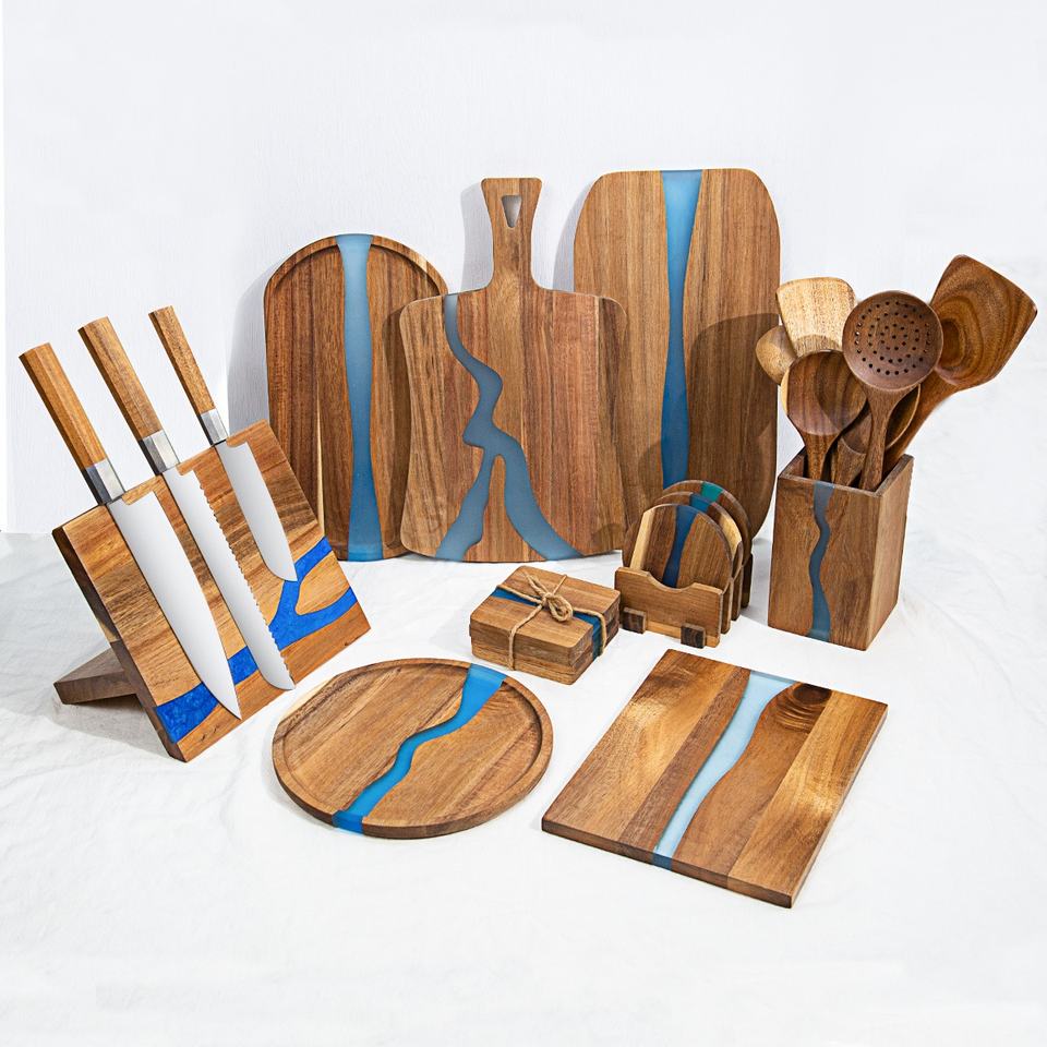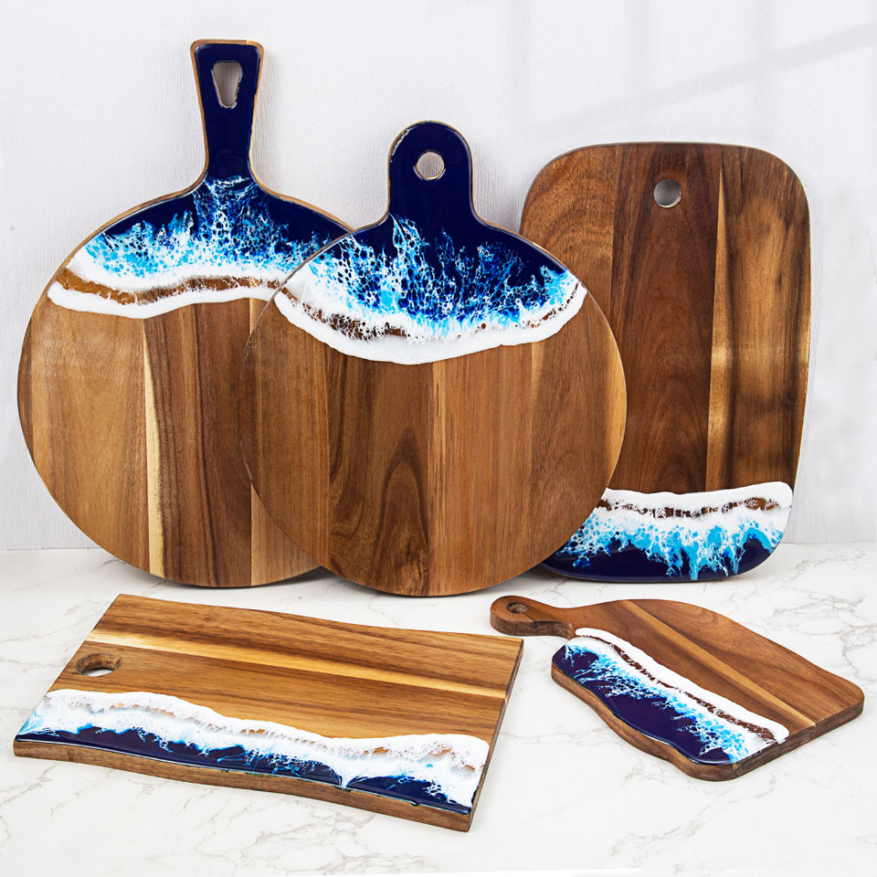 Tabla de Cortar de Madera de Olivo de Tamaño Personalizado, Directo de Fábrica, con Resina Epoxi y Madera de Acacia para Picar, Ingredientes de Resina Oceánica