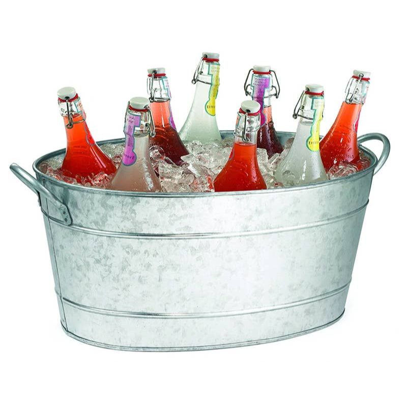 Cubeta de metal galvanizado ovalada grande, directa de fábrica, para bebidas, con asas laterales, para el hogar, vino, champán, artículos de bar.