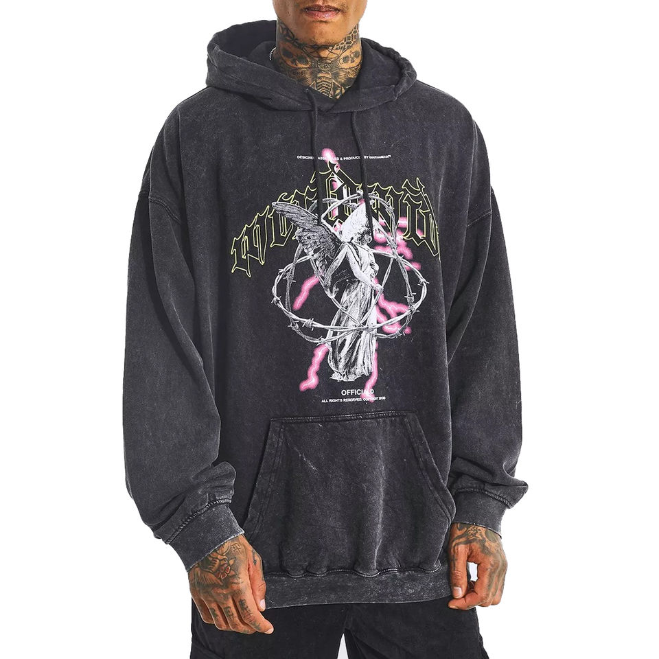 Sudadera con capucha con estampado de lavado ácido para hombre directo de fábrica 100% poliéster ecológico secado rápido invierno térmico Etiqueta Privada MOQ bajo