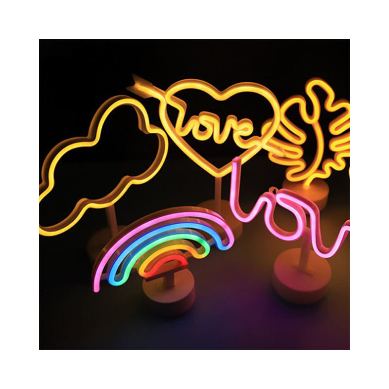 Luces de letrero de neón Led directas de fábrica con Base de soporte, luz de mesa alimentada por batería para sala de lectura, mesita de noche, sala de estar