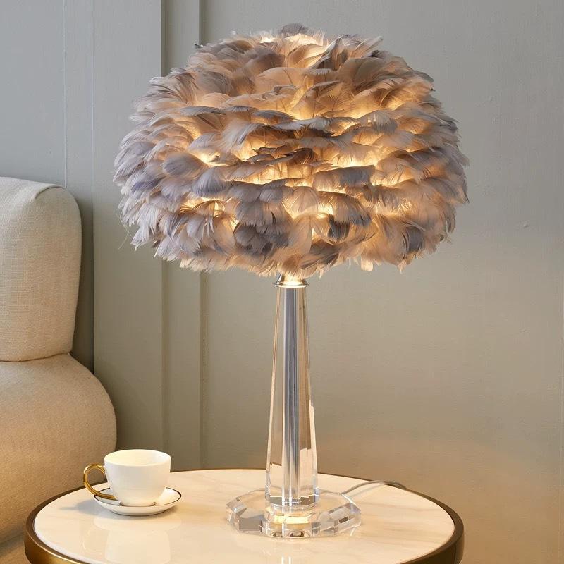 Lámparas de Mesa de Cristal con Plumas Personalizadas de Lujo Directo de Fábrica para Dormitorio/Hotel, Accesorios Populares para Mesita de Noche Transfronterizos