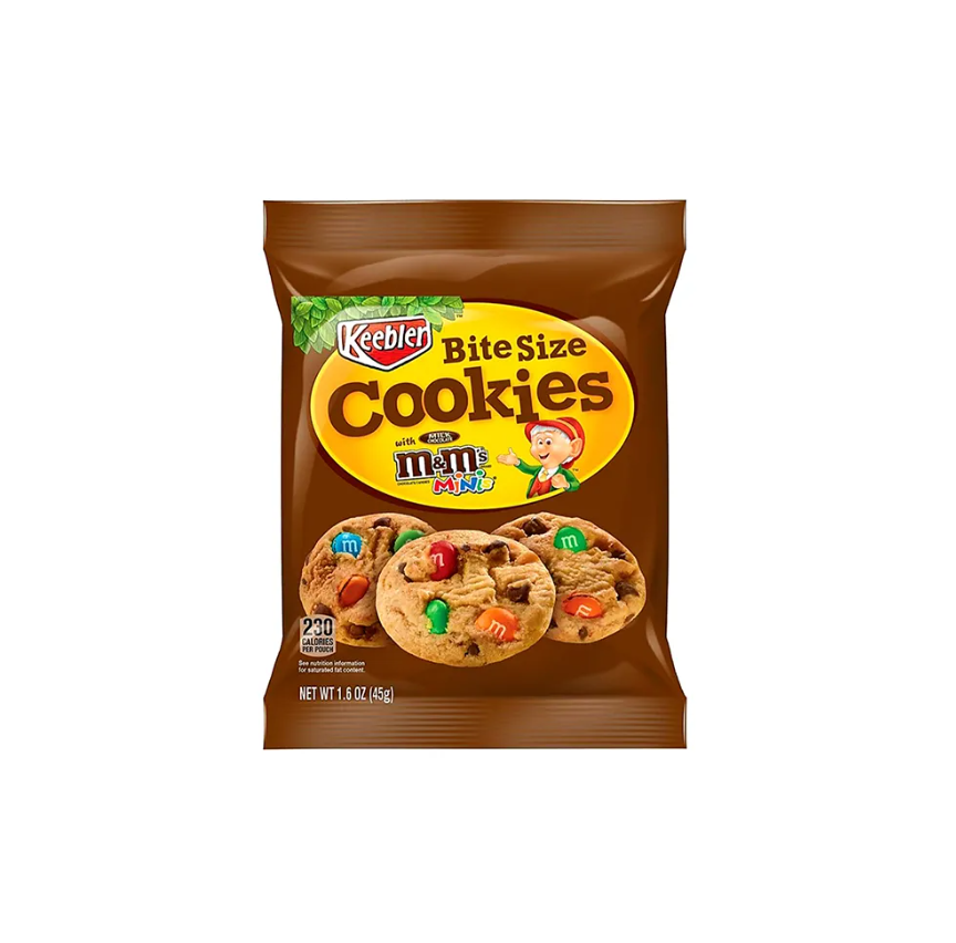 Galletas M&M's Bite Size de 45g, Directo de Fábrica, del Grupo Keebler Ferrero USA, con 12 Meses de Caducidad, para Distribuidores
