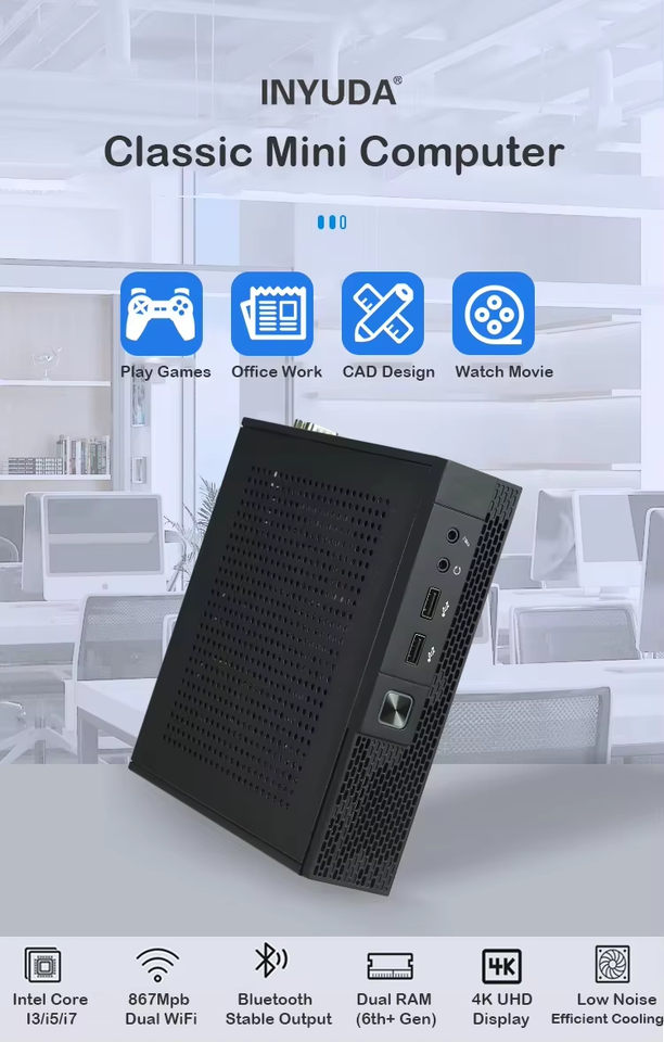 Directo de fábrica Mini PC Compact Office Computer Intel I3 I5 I7 8GB RAM 256GB SSD Windows 10 Pro Low Noise Business Workstation