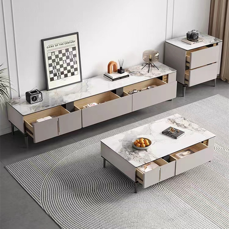 Juego de Muebles de Sala de Estar Modernos Italianos Directo de Fábrica: Mesa de Centro y Mueble para TV de Acero al Carbono Resistente y Duradero (con Cajones)