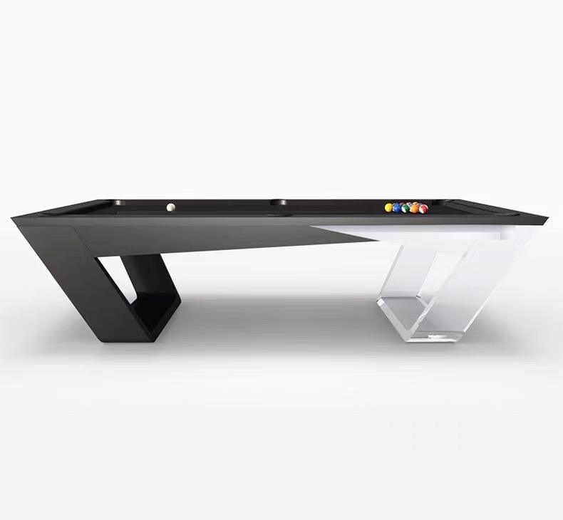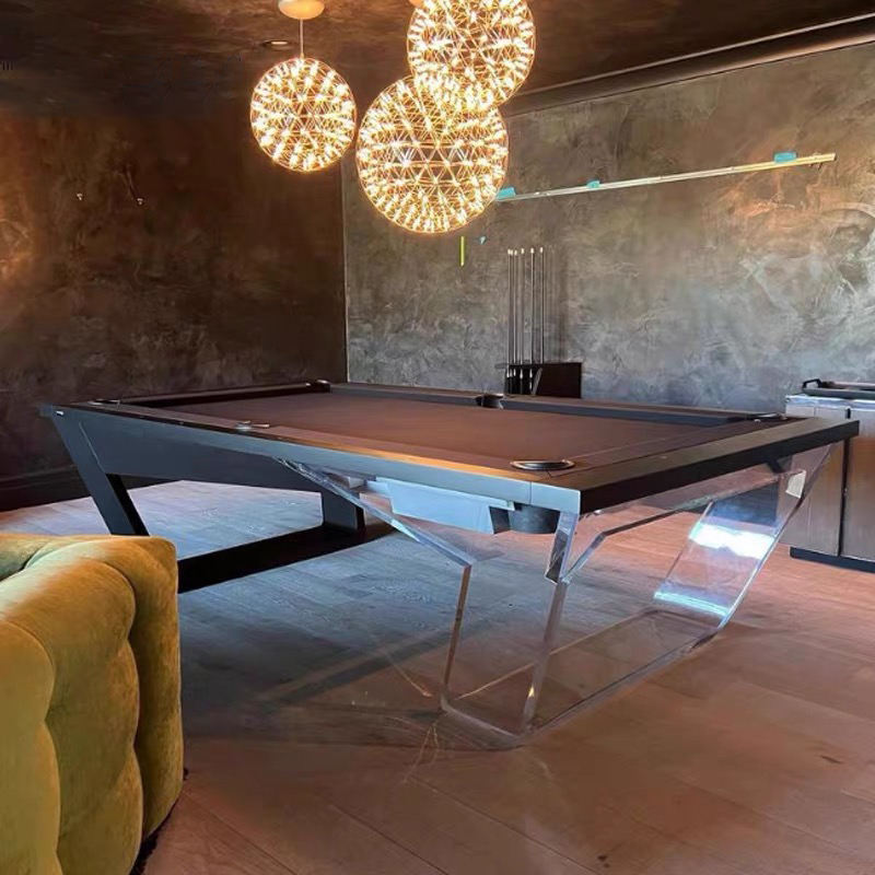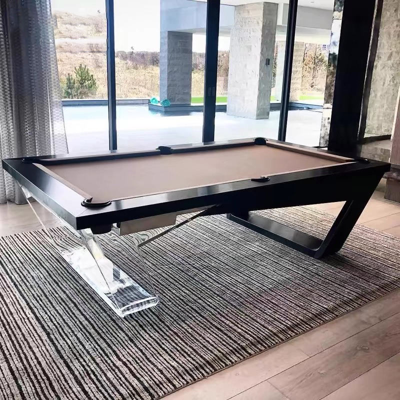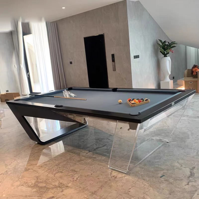 Mesa de Billar Profesional de Lujo Moderna de 9 pies, Directo de Fábrica, Patas de Acrílico Transparente, Marco de Madera Negra, Pizarra Profesional
