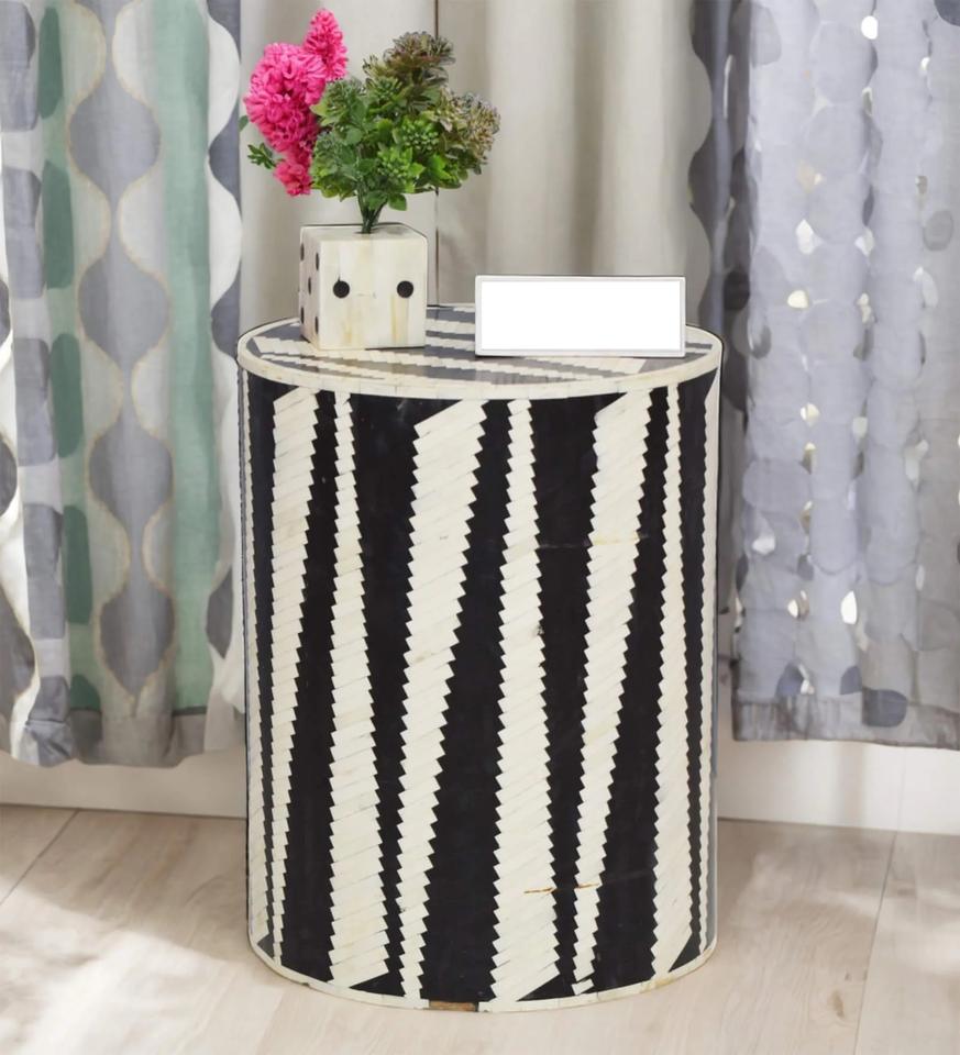 Taburete/Otomana Redonda de Resina y MDF con Incrustaciones Hechas a Mano, Diseño Floral, Decoración para Dormitorio y Sala de Estar