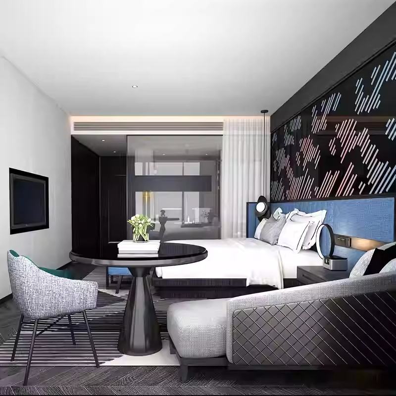 Juego de Muebles de Dormitorio Modernos para Apartamento u Hotel, Directo de Fábrica, con Cama King/Queen, Otomana, Cabecera Tapizada y Mesita de Noche