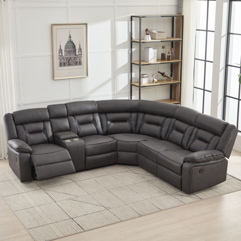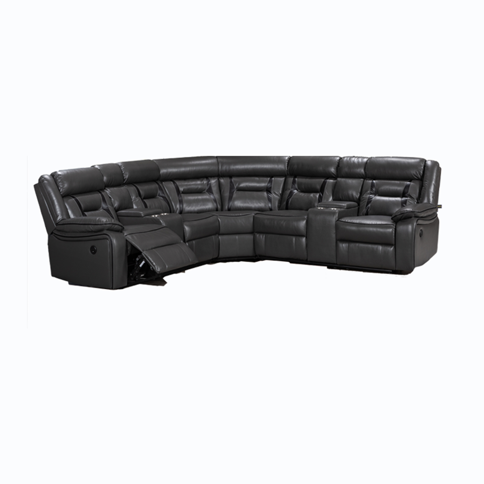 Sofá Modular de Esquina Reclinable de Cuero Sintético con Portavasos y Almacenamiento, Muebles de Sala de Estar, Venta Directa de Fábrica, Modelo 7005