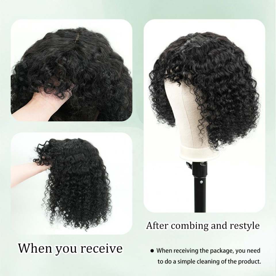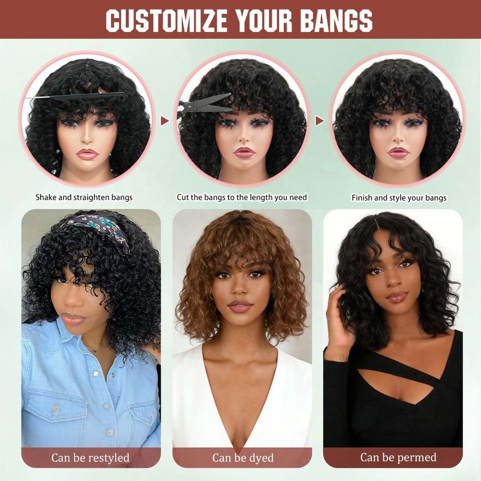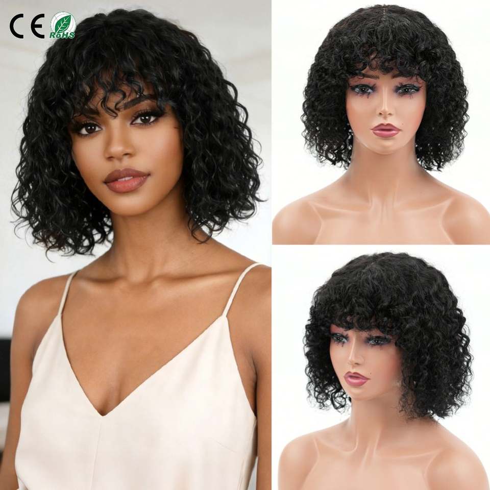 Peluca rizada de cabello humano 100% natural, con flequillo, densidad 210%, encaje frontal 4x1, cierre 4*1, de fábrica directa