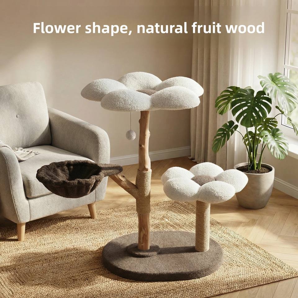 Árbol para Gatos Integrado de Madera Natural Sólida Directo de Fábrica, Diseño Floral Encantador, Juguete para Gatos de Interior, Muebles para Mascotas, Venta al por Mayor OEM