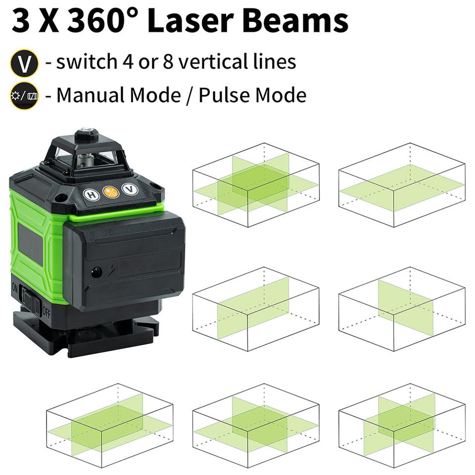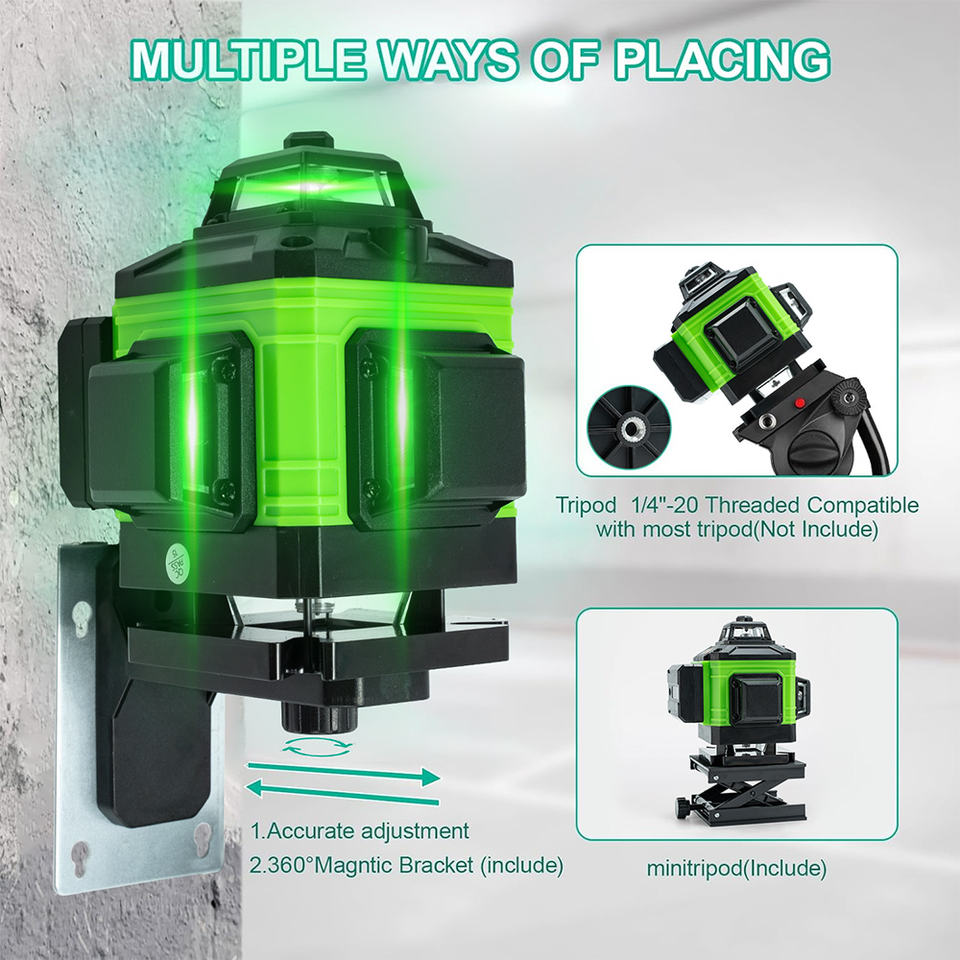 Nivel Láser 3D de Fábrica Directo, Nivel Láser de Pared de 12 Líneas, Autonivelante 4D, Nivel Láser Rotatorio Verde de 360°