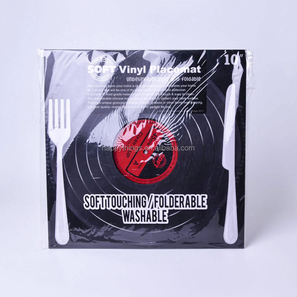 Nombre del elemento:Novedad Decoración para el hogar de silicona suave CD Record Retro vinilo Placemat