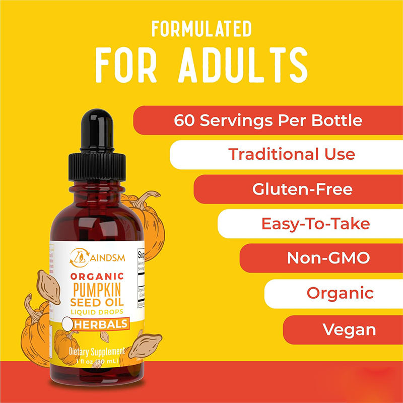Extracto de aceite de semilla de calabaza orgánico directo de fábrica, gotas líquidas, soporte de próstata a base de hierbas, salud urinaria, aceite de semilla de calabaza, gota líquida