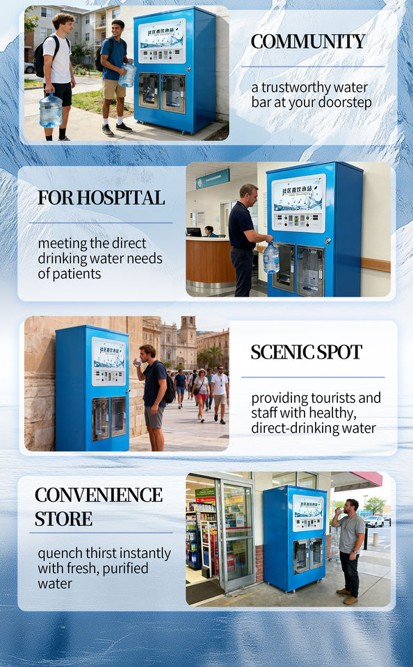 Dispensador de Agua Automático de Acero Inoxidable con Doble Boquilla y Ósmosis Inversa (RO) de 24 Horas, Personalizable para Exteriores, Directo de Fábrica