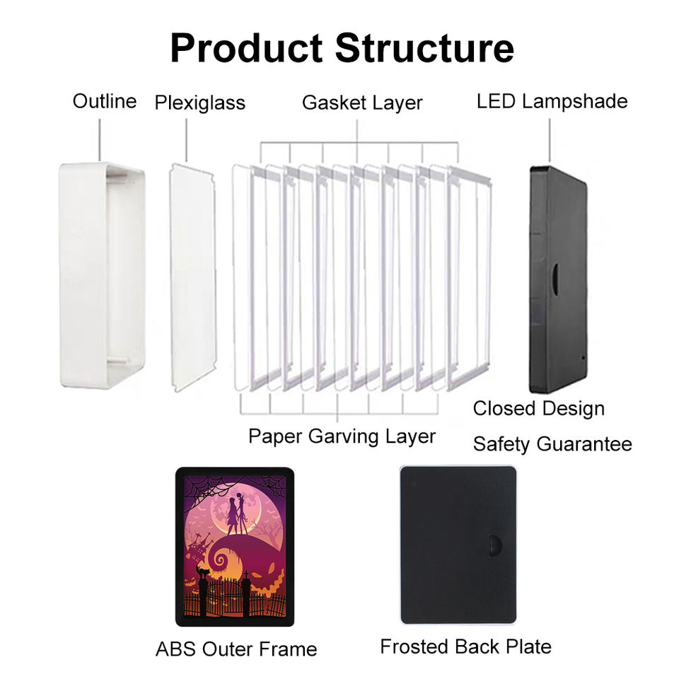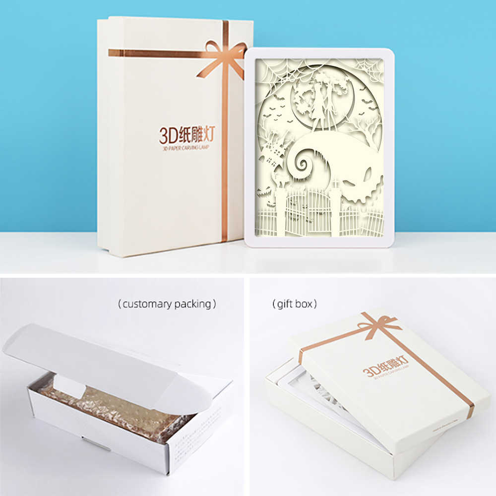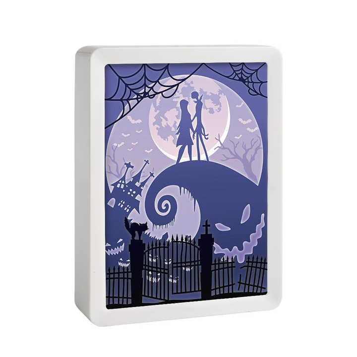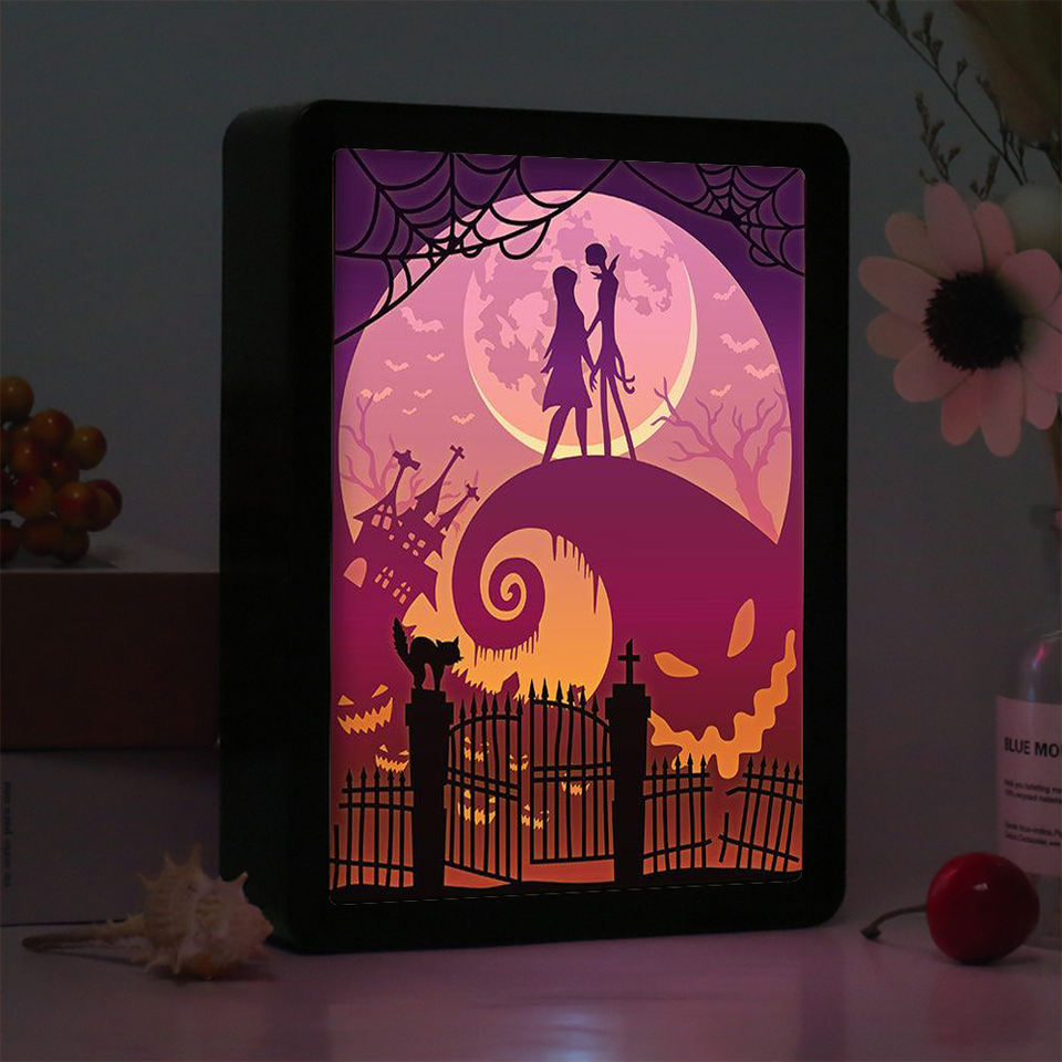 Lámpara de tallado de papel, marco de fotos pintado personalizado, cajas de sombra, luces de pesadilla antes de Navidad, directo de fábrica