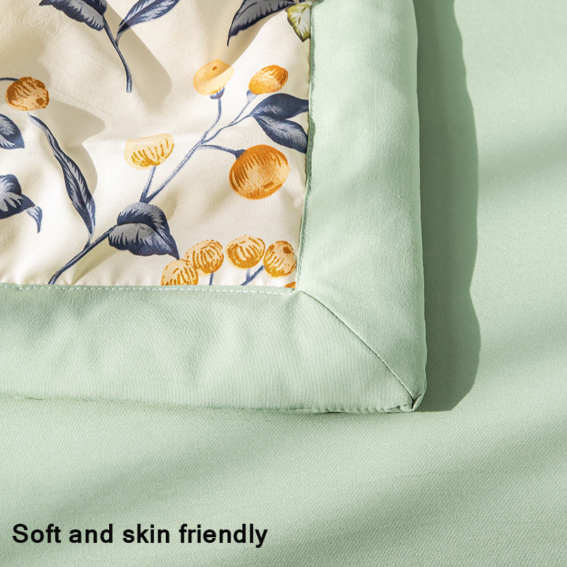 Socio directo de fábrica King Size Verde claro Algodón suave Verano Aire acondicionado Edredón Flores impresas Edredón