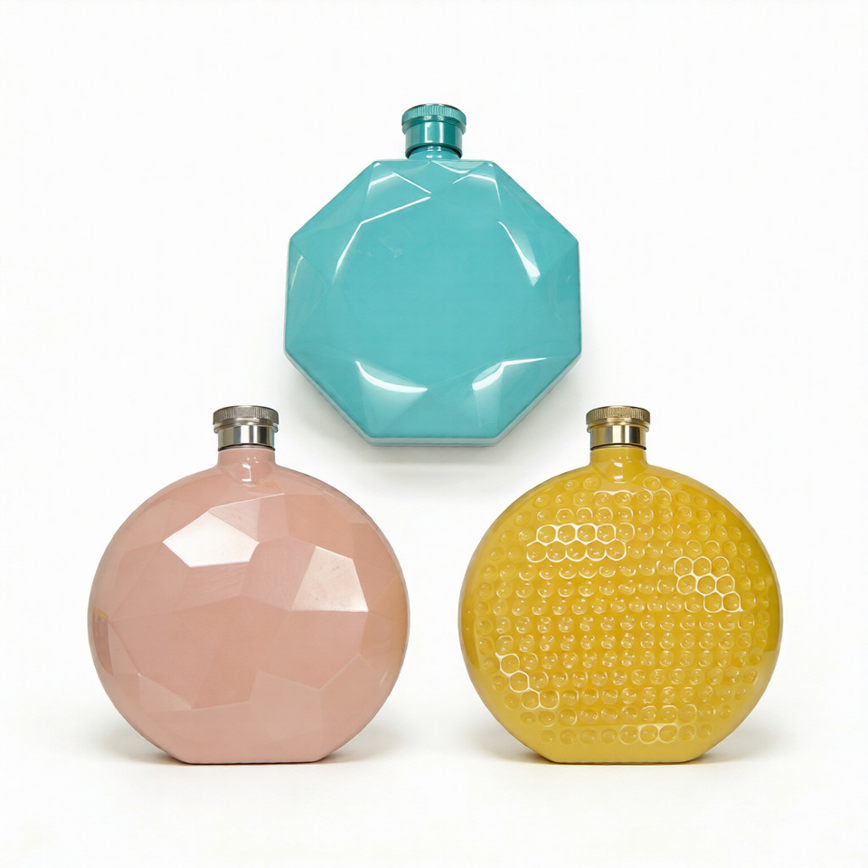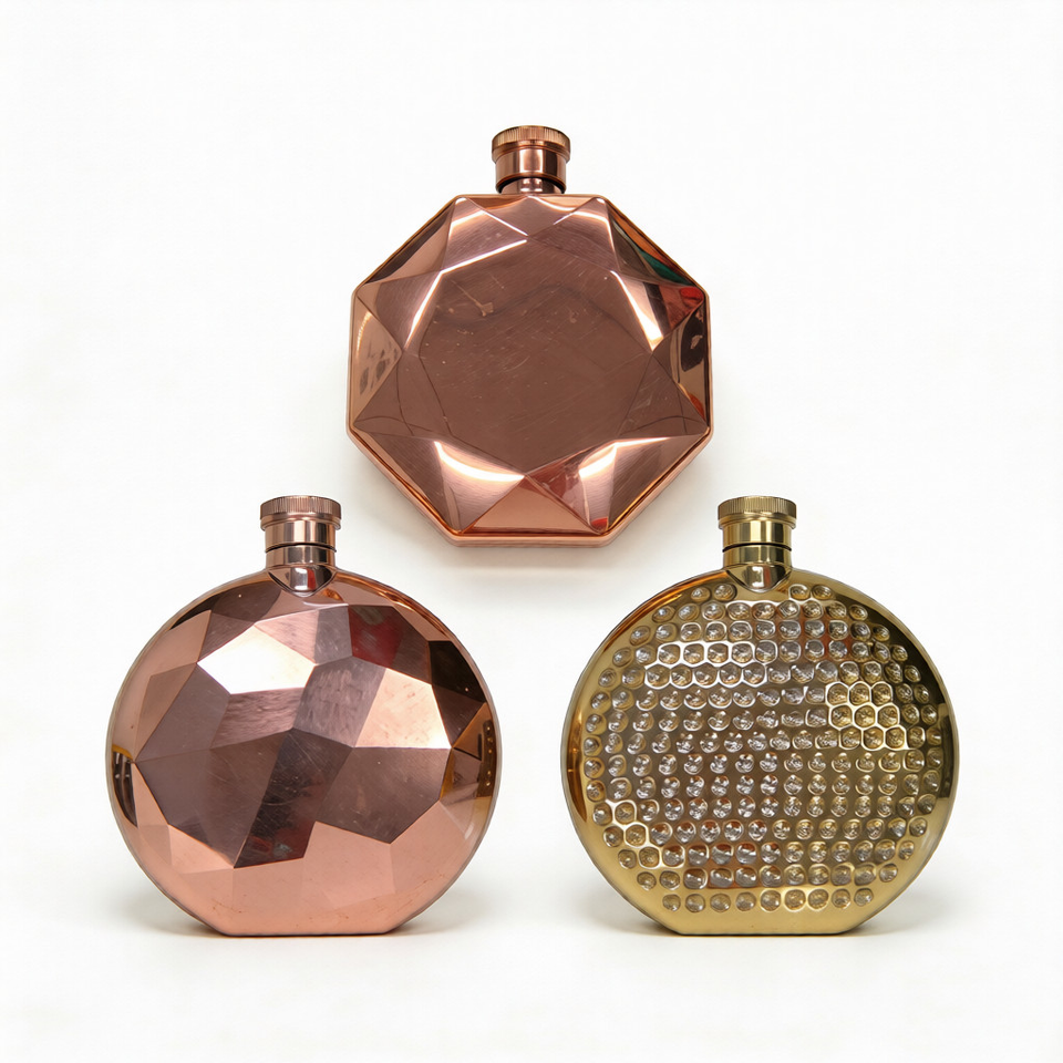 Directo de Fábrica: Petaca Personalizada de Acero Inoxidable con Incrustaciones de Cristal y Patrón Martillado, Mecanizada por CNC