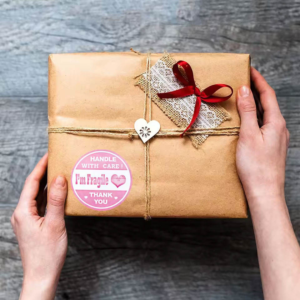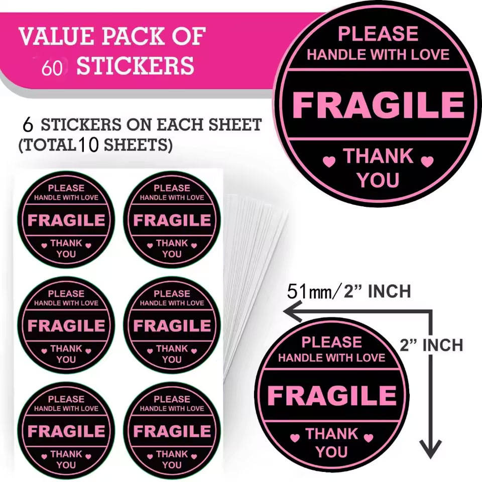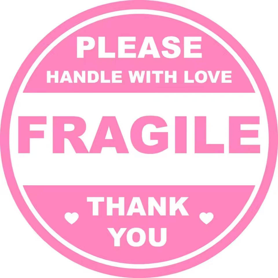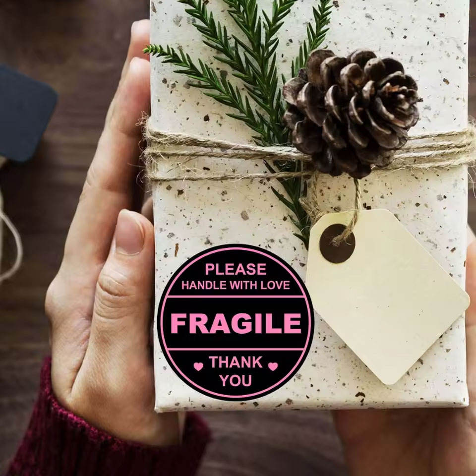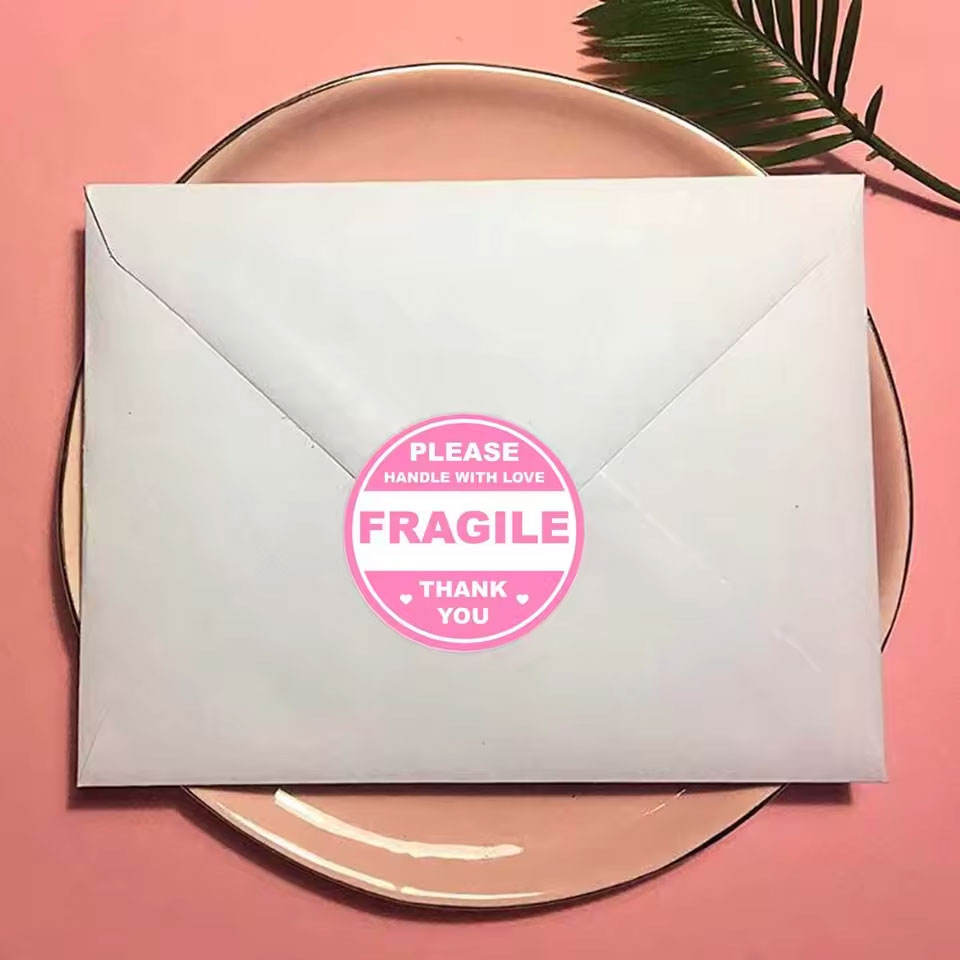 Etiquetas Adhesivas Redondas Rosas de Fábrica, No Aplastar, No Doblar, Manejar con Cuidado, Etiquetas Frágiles para Envío y Mudanza