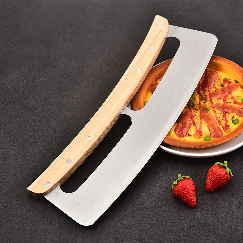 Cortador de Pizza Directo de Fábrica, Mango de Madera, Cortador de Pizza Semicircular de Acero Inoxidable