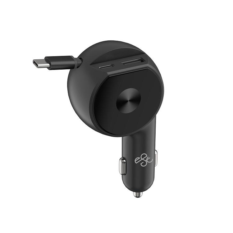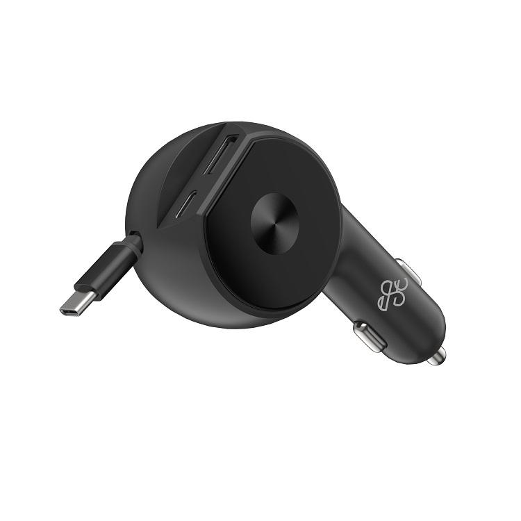 Cargador de Coche Portátil Universal de 12V-24V 30W con Cable Retráctil Tipo-C de Carga Rápida para Teléfono, Tableta y Cámara, Directo de Fábrica