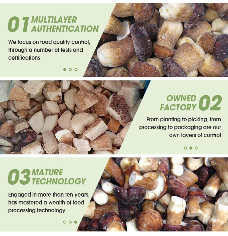 Precio directo de fábrica China Boletus Edulis Mushroom IQF Frozen Wild Boletus Edulis
