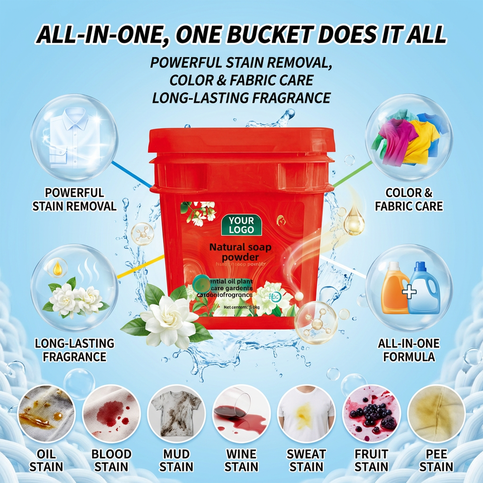 Precio Directo de Fábrica, Jabón en Polvo Natural, Detergente para Ropa, 2.5 kg, Empaque a Granel, Fabricante de Detergente OEM/ODM