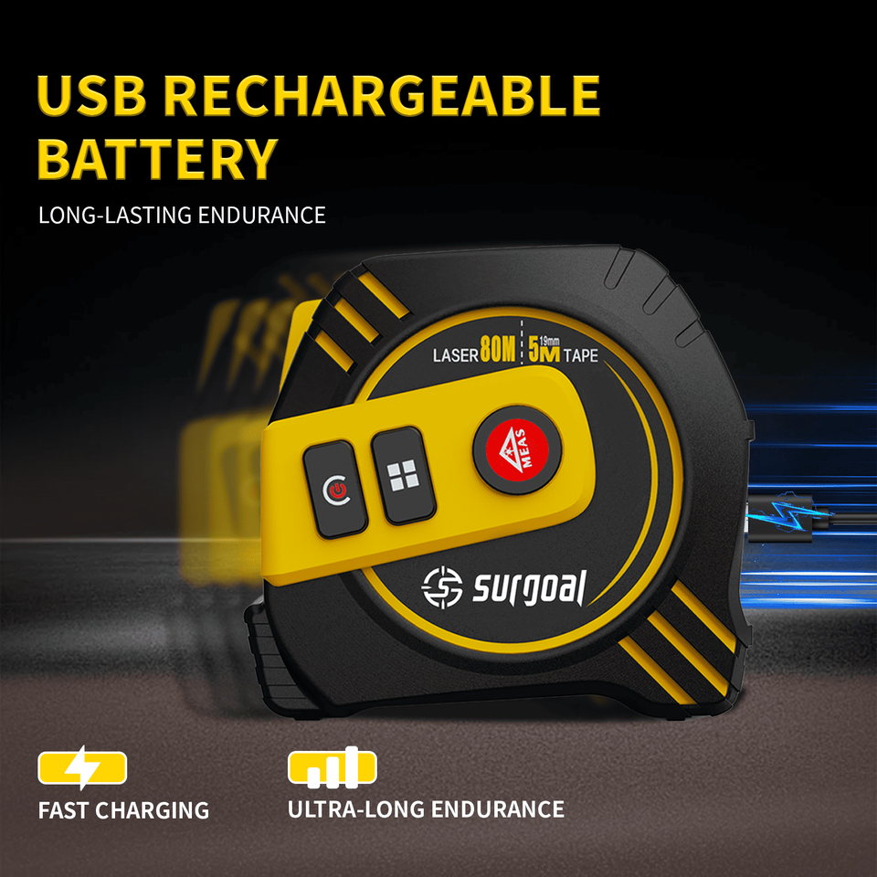 Cinta Métrica Láser T2 con Precio Directo de Fábrica, Alcance de 80M, Hoja de Acero de 5M, Recargable Tipo-C