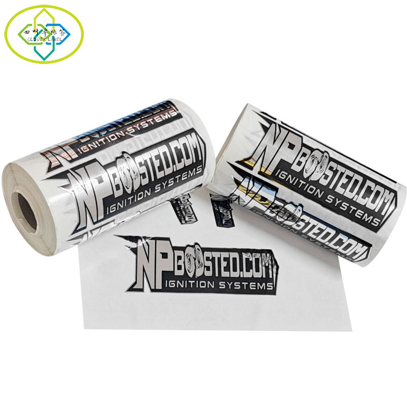 Impresión directa de fábrica de etiquetas adhesivas plateadas con acabado brillante