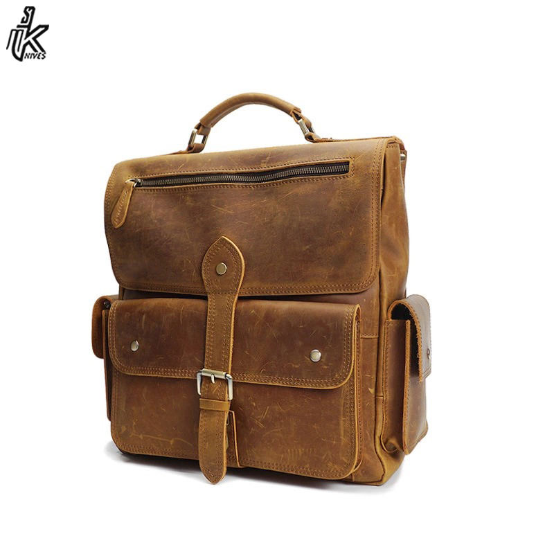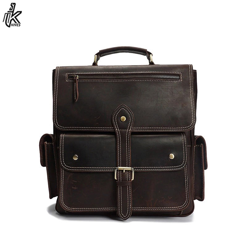Directo de fábrica Retro Hombres Mochila Mejor Calidad Real Cuero Al Por Mayor Precio Barato