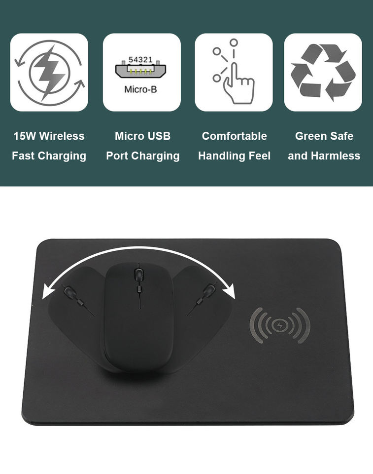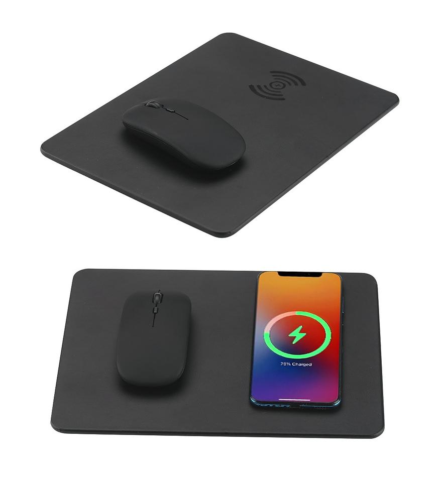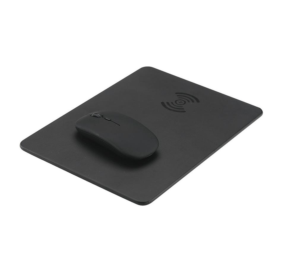 Venta directa de fábrica 15W Cargador inalámbrico rápido Alfombrilla de ratón de cuero Pu Gráficos personalizados Alfombrilla de ratón de publicidad para uso doméstico de oficina