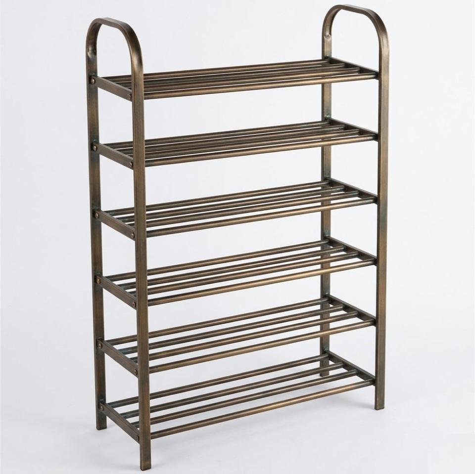 Venta Directa de Fábrica: Zapatero Metálico de 2 Niveles, Acabado Dorado de Primera Calidad, Estante de Almacenamiento Independiente para Entrada