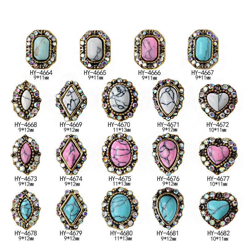 Venta Directa de Fábrica, Pegatinas de Uñas 3D de Aleación de Alta Calidad, Diseño de Diamantes Multiforma con Color Mágico