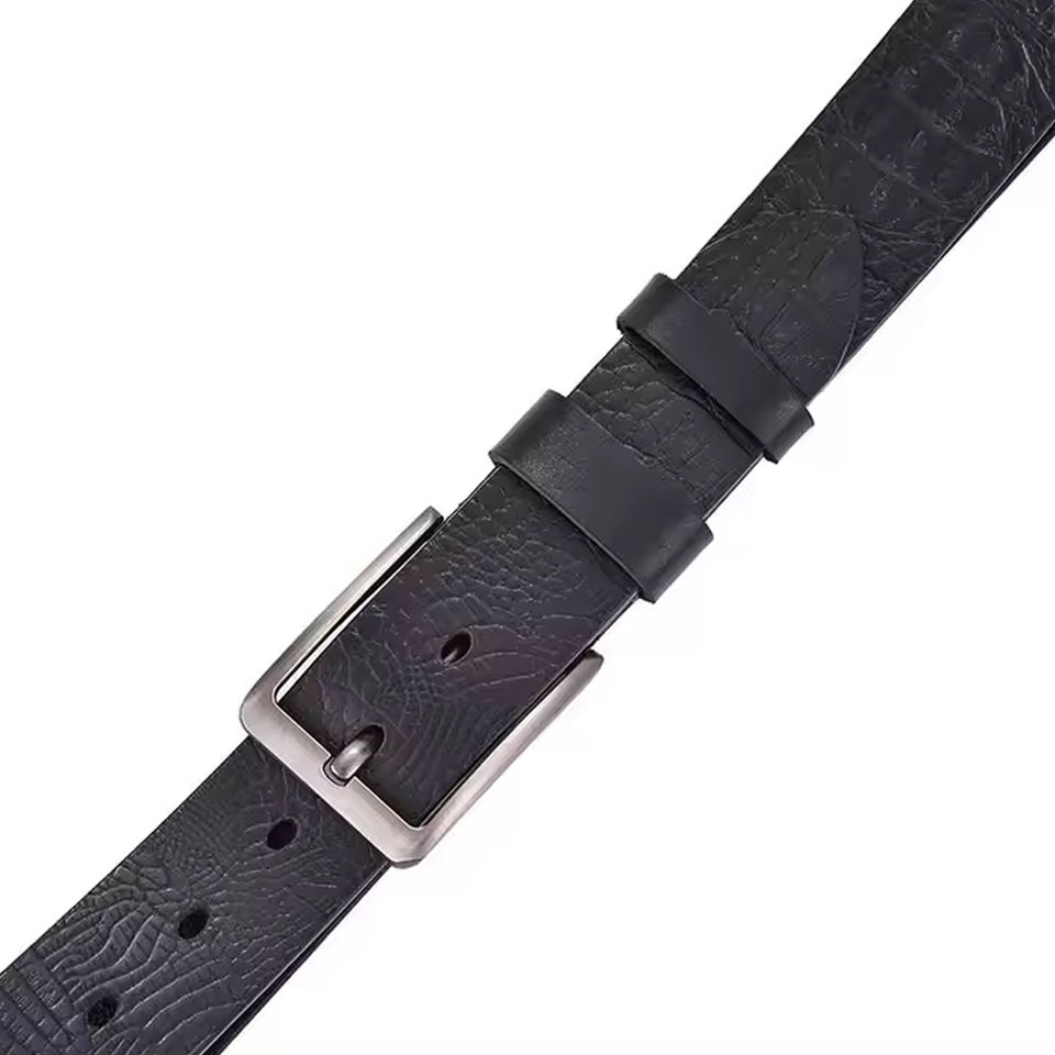 Venta directa de fábrica Negocios Cinturones de cuero de grano completo real puro Aleación de zinc Pin Hebilla Cuero de vaca Cinturón de cuero genuino