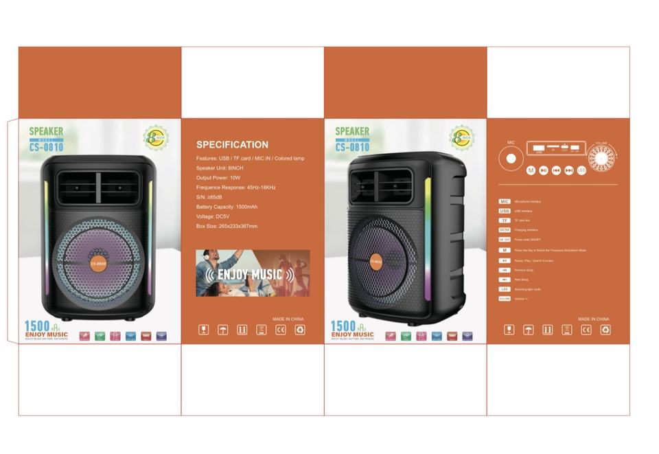 Venta Directa de Fábrica, Barra de Sonido CS-0810 de 8 Pulgadas, Sistema Hi-Fi, Altavoz Portátil para Exteriores, Altavoz con Woofer para Fiestas y Karaoke