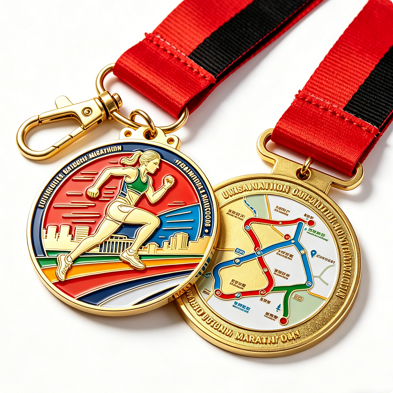 Venta Directa de Fábrica, Medalla 3D Personalizada de Metal Chapada en Oro, Impresión Offset, Cinta Roja y Blanca, Regalo Promocional con Temática Deportiva
