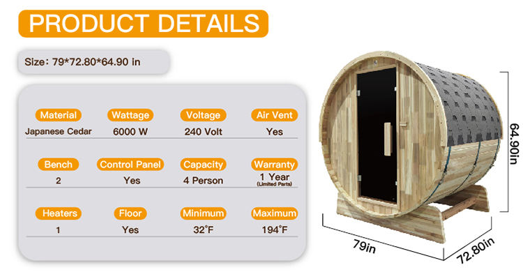 Venta Directa de Fábrica, Sauna de Barril de Cedro Rojo de Madera Sólida Moderna para Exteriores, Personalizada, para 4 Personas, Prefabricada, Ecológica, para Villa o Parque