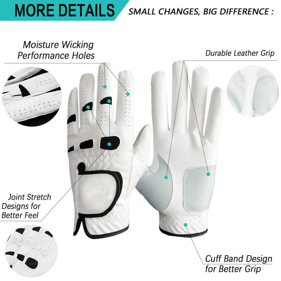 Venta directa de fábrica Diseñe su propio logotipo Guante de golf transpirable de cuero suave Deportes Personalizado Piel de oveja duradera