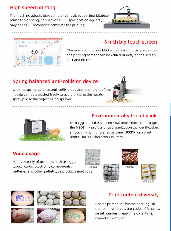 Impresora de Huevos de Tinta, Venta Directa de Fábrica, Impresión Automática de Logotipos/Fechas/Códigos QR en Huevos