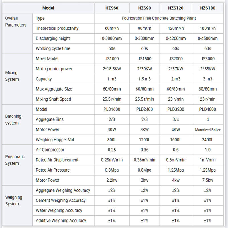 JS3000 Concrete Mixer, PLD4800 Batching Machine, Belt Conveyor, H-beam baseLos componentes principales.