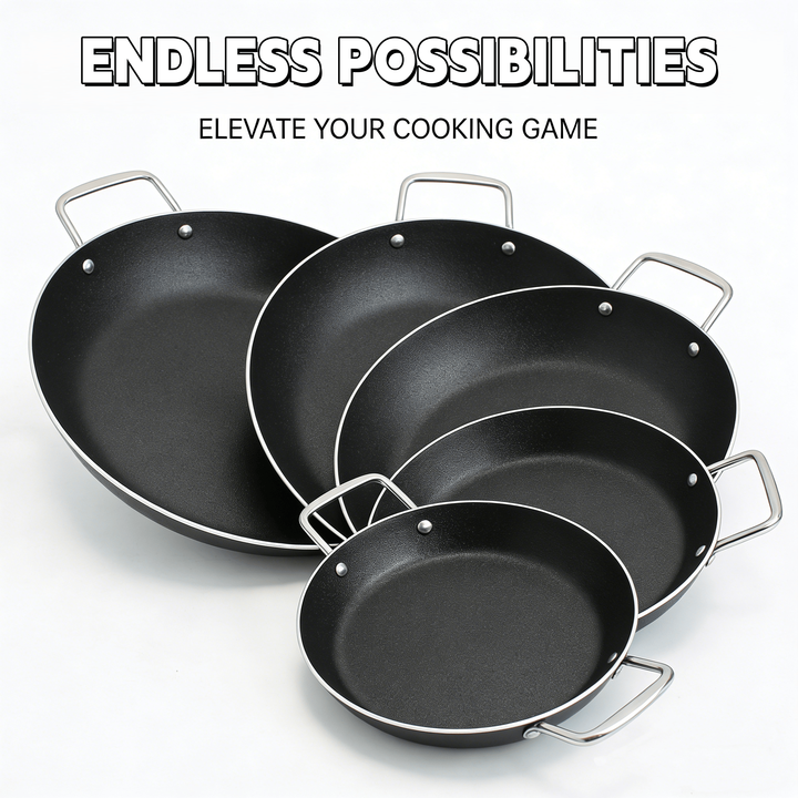 Venta Directa de Fábrica: Juego de Sartenes para Paella de Mármol Antiadherentes, Compatibles con Inducción, con Asas de Aleación de Aluminio, Aptas para Horno, para Paella de Mariscos