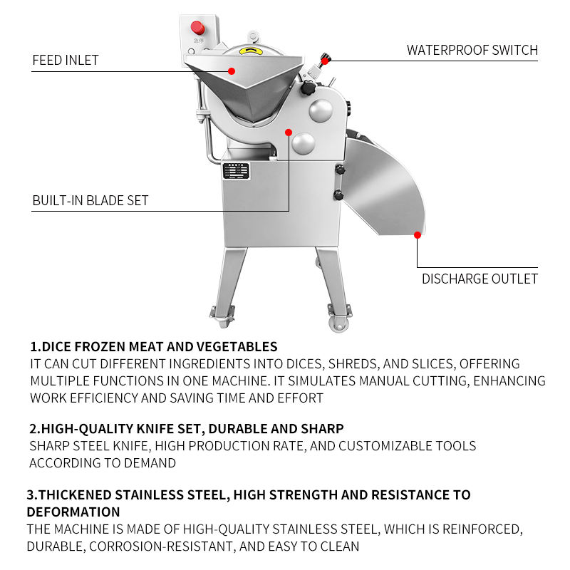: Función:Chop frozen meat and vegetables.It can cut different ingredients into dices, strips and slices