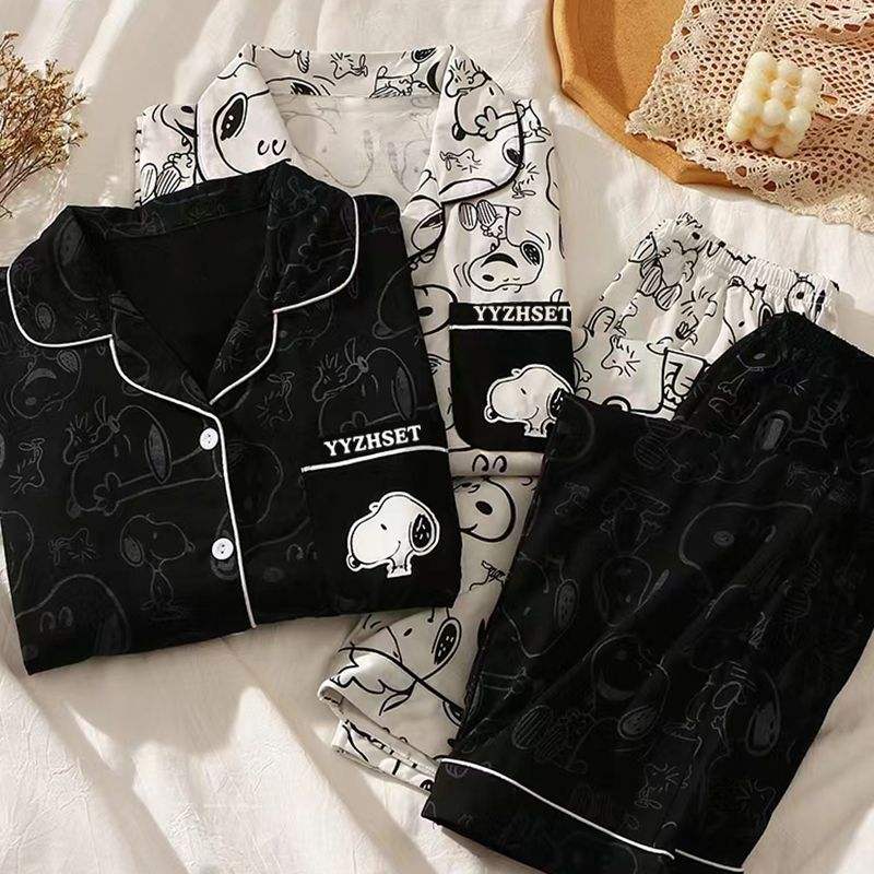 Venta Directa de Fábrica, Nuevos Pijamas de Manga Larga para Mujer, Conjunto de Cárdigan Abierto, Lindo Dibujo Animado de Snoopy