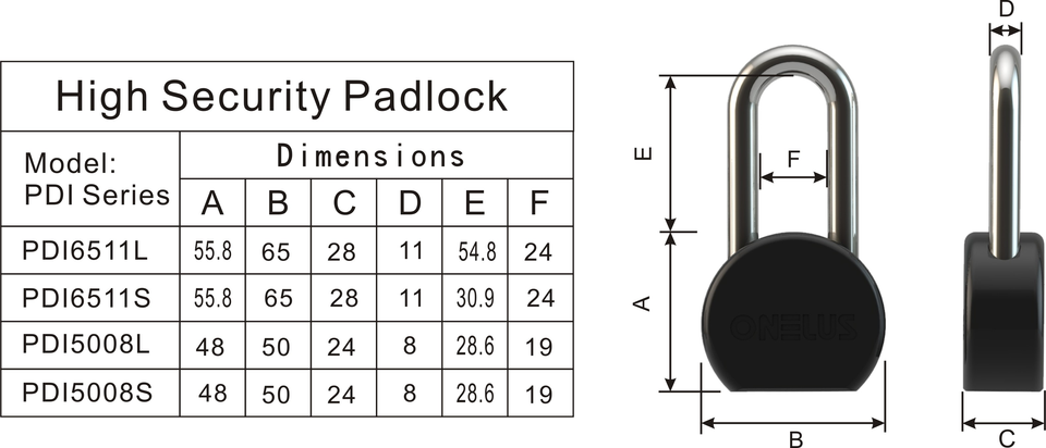 Candado Rectangular Antirrobo ONELUS con Llave Mecánica y Acabado Electroplacado, Modelo 16 - Nuevo Producto para Exportación, Venta Directa de Fábrica