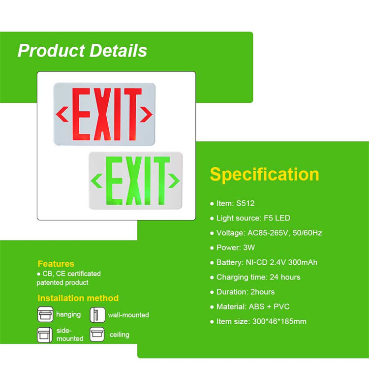 Nombre del Producto:Luz LED de salida de emergencia recargable de plástico para montaje en pared