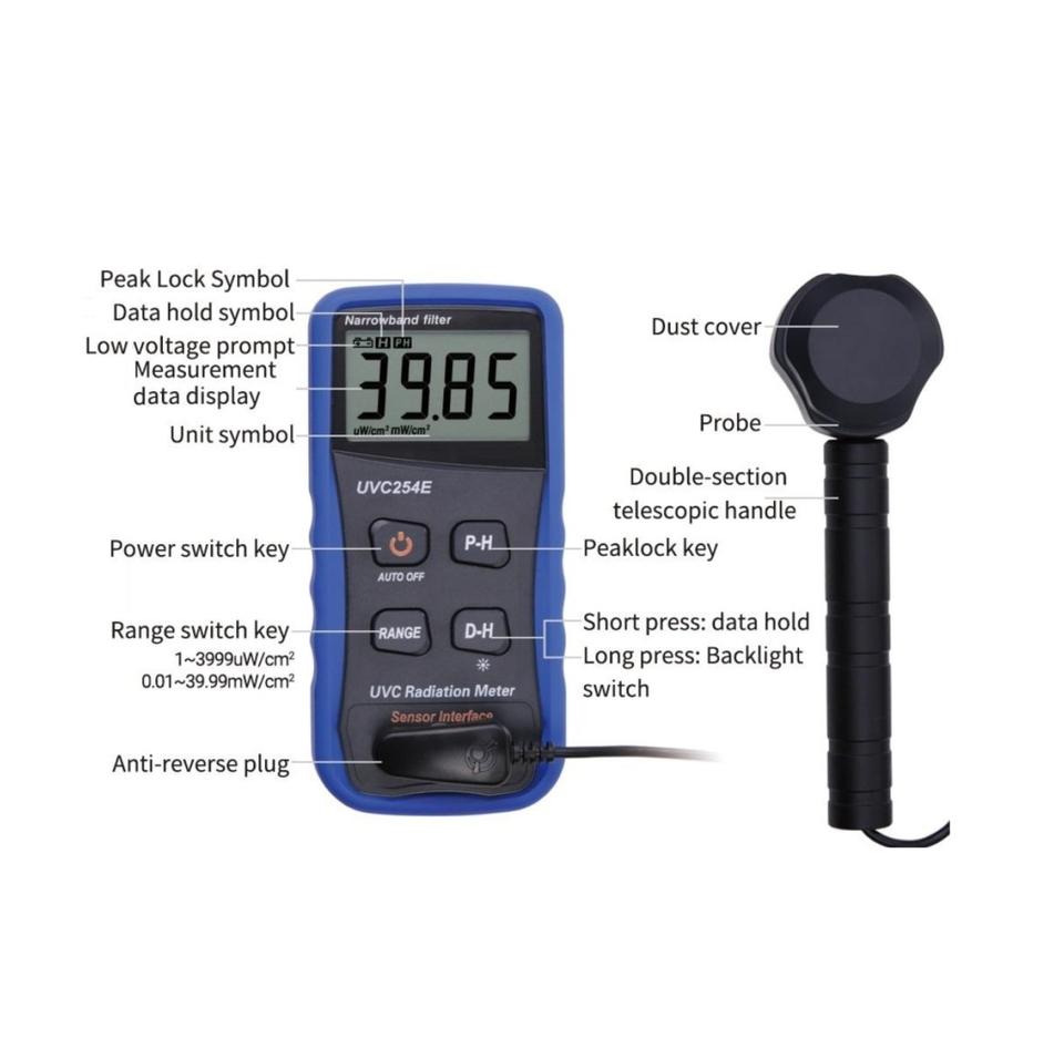 Medidor de Intensidad UVC de Banda Estrecha de Alta Resolución Portátil, Radiómetro Ultravioleta-C UVC254E con Soporte, Venta Directa de Fábrica