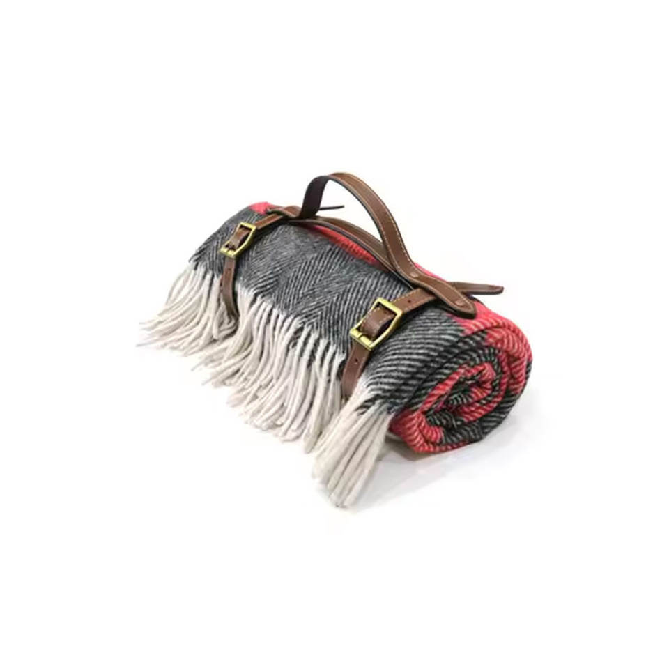 Venta directa de fábrica Manta de lana roja y azul a rayas de espiga más vendida