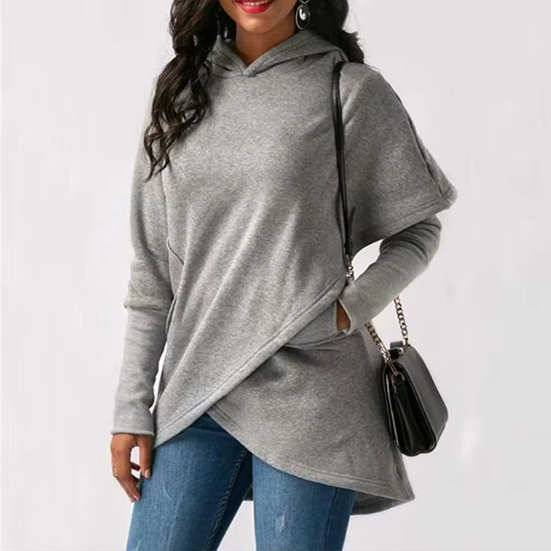 Venta directa de fábrica de las mujeres de manga larga de diseñador de Otoño de longitud media pulóver abrigo de las mujeres con logotipo personalizado sudaderas con capucha