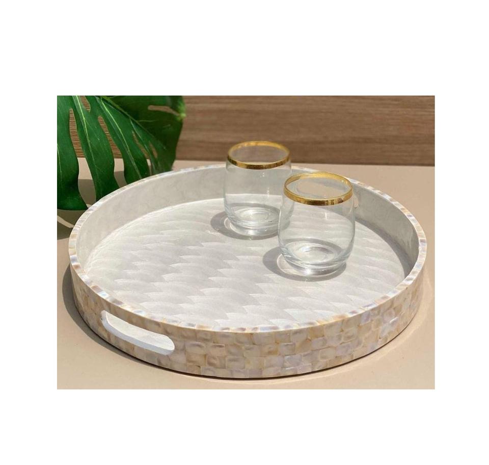 Venta Directa de Fábrica: Bandeja Decorativa para Servir la Cena en Casa, Diseño Floral, Bandeja de MOP, Venta al por Mayor desde India