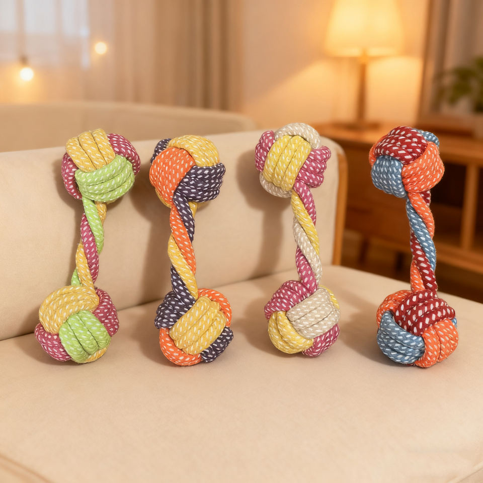 Juguete de cuerda de algodón con forma de mancuerna.