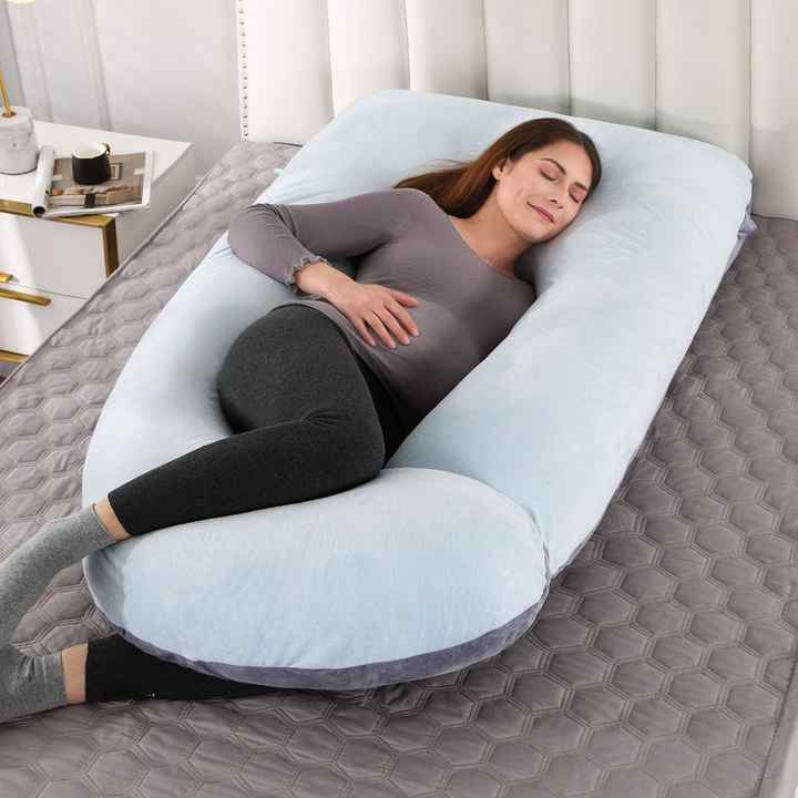 Venta directa de fábrica, barato, personalizado, forma de G, cubierta de terciopelo de cristal, almohada de embarazo, almohadas grises para dormir de cuerpo total de maternidad